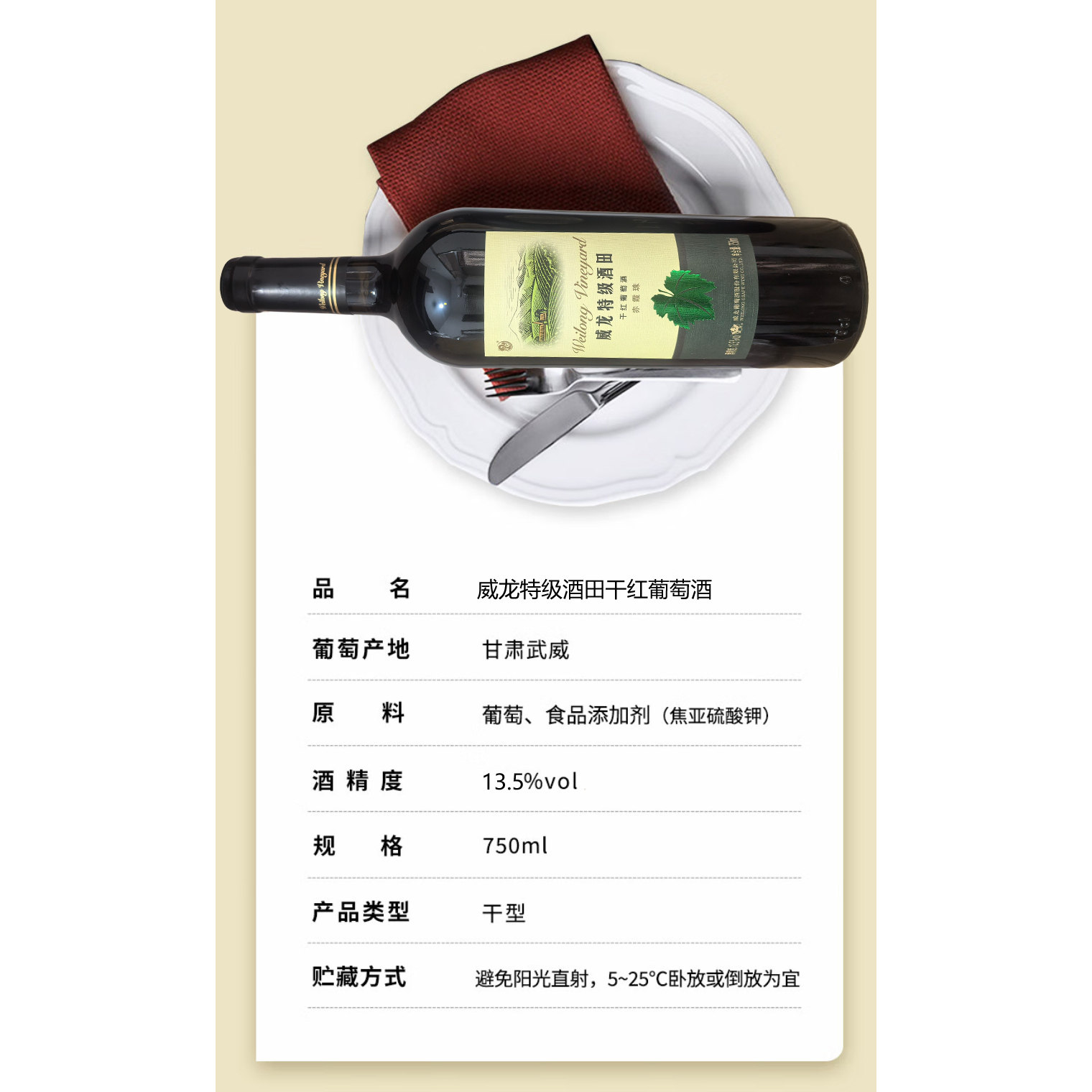 威龙特级酒田干红葡萄酒赤霞珠 13.5度 750ml*6瓶珍藏级干型红酒