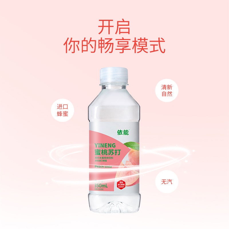 依能柠檬蜜桃水无汽苏打水350ml 12瓶装纯果味饮料饮品整箱桃味*
