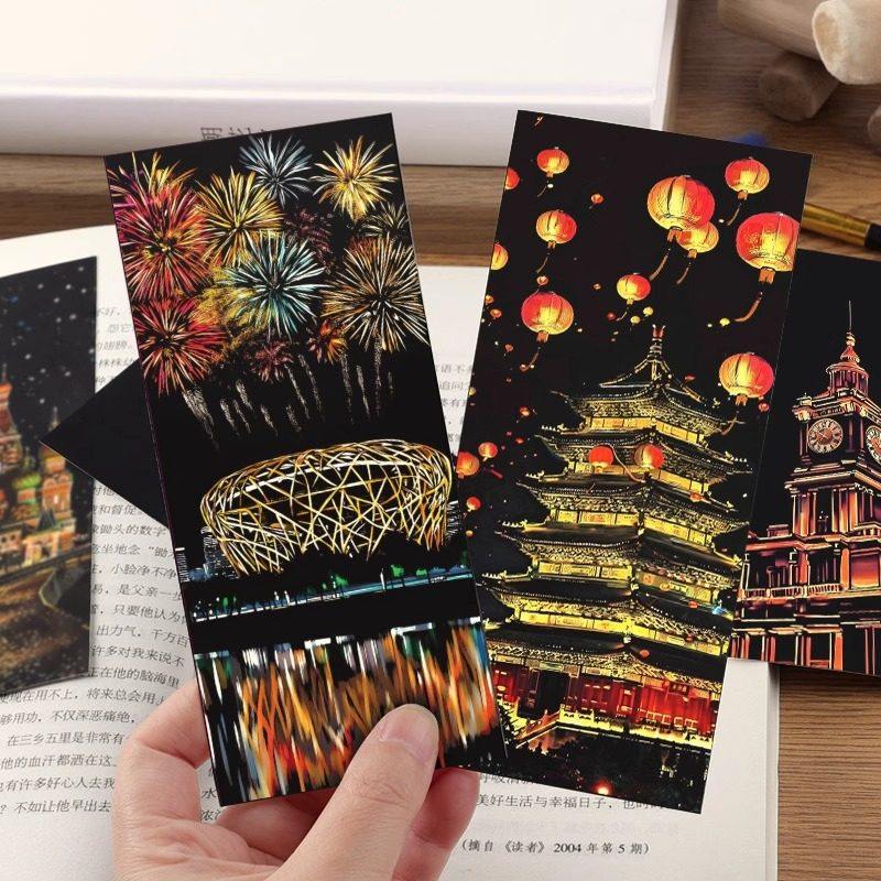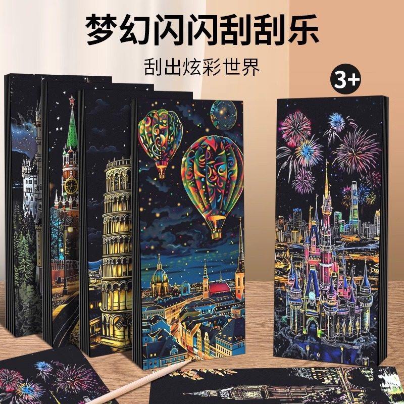 夜景刮刮画炫彩都市创意城堡刮刮纸成人女大学生解压画艺术刮画纸抖音同款古风城市夜景彩色diy画纸小学生用