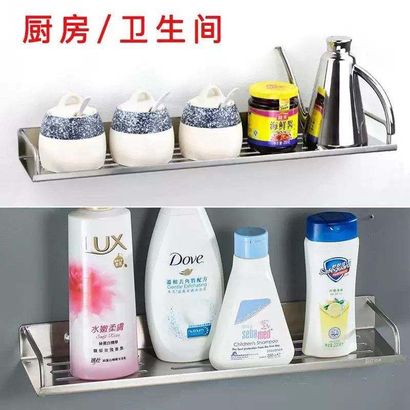 加厚304不锈钢厨房收纳架壁挂墙上架子角架置物架卫生间浴室免钉
