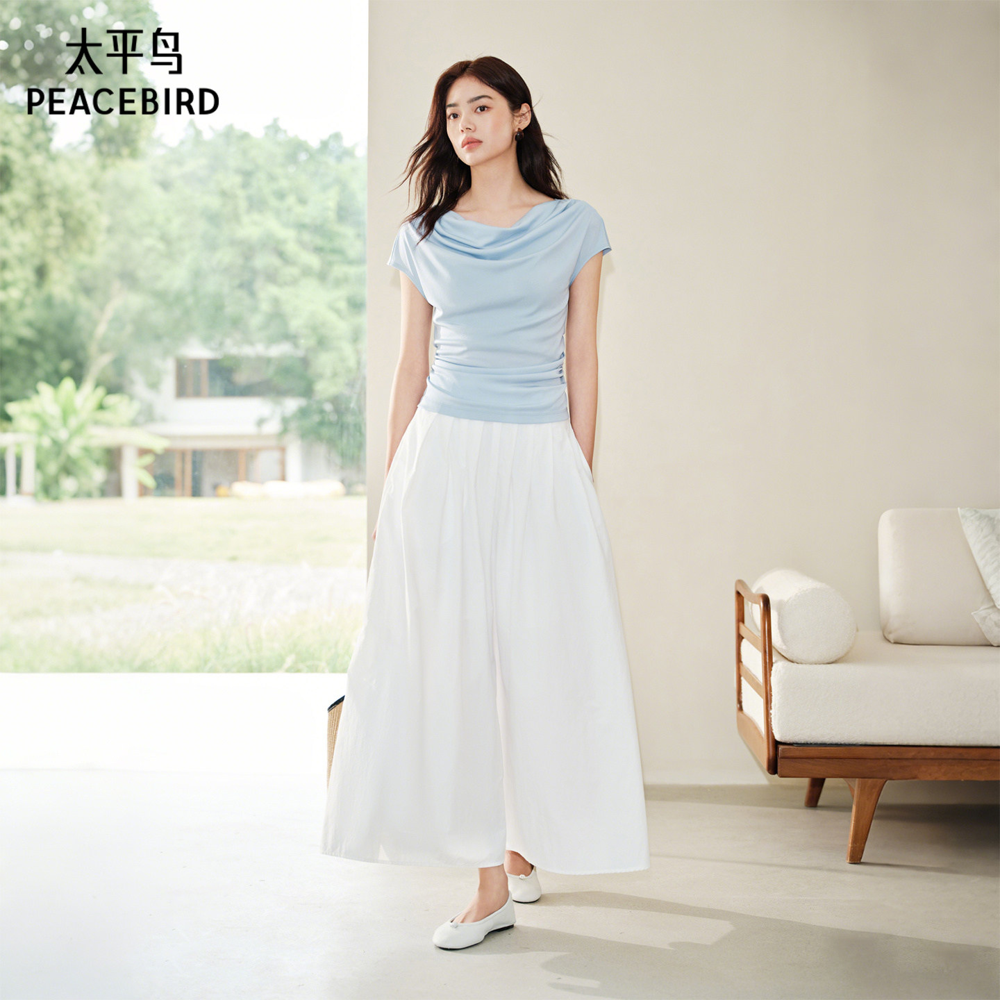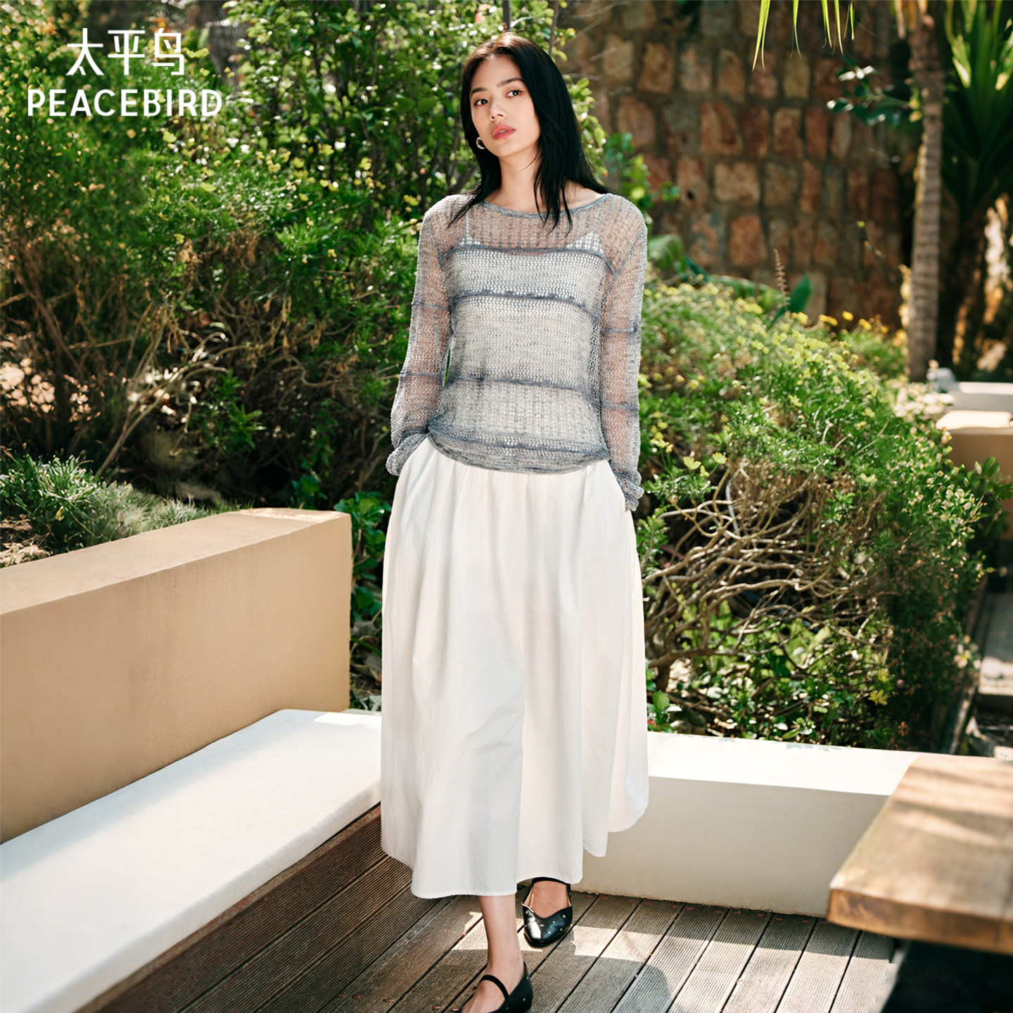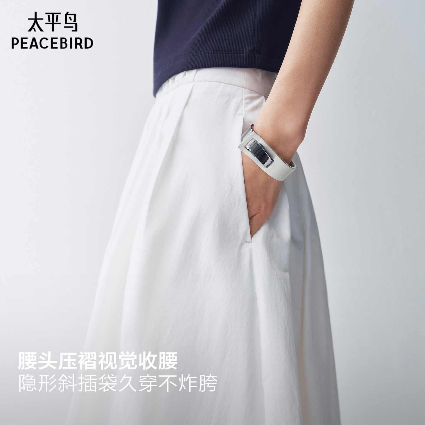 太平鸟恋夏小白裙半身裙2026春夏新款A字百褶白色伞裙通勤中长裙