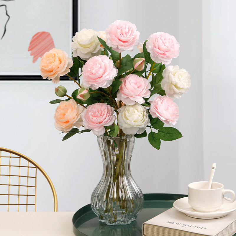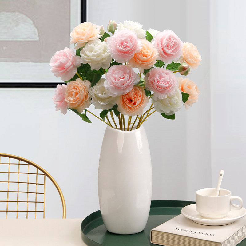 牡丹仿真花塑料假花客厅装饰花摆件餐桌花摆设玫瑰花仿生花束干花