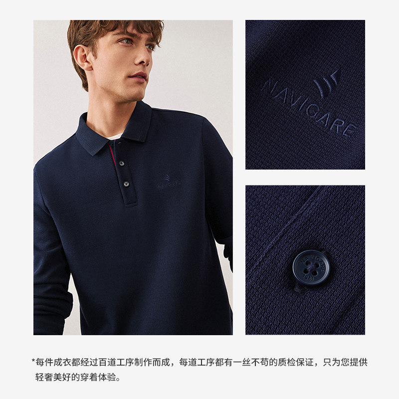 [华夫格]Navigare意大利小帆船黑色长袖polo衫男士纯棉翻领T恤