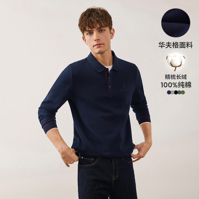 【透气珠地】暇步士男装2025秋季新款弹力休闲行政商务长袖POLO衫