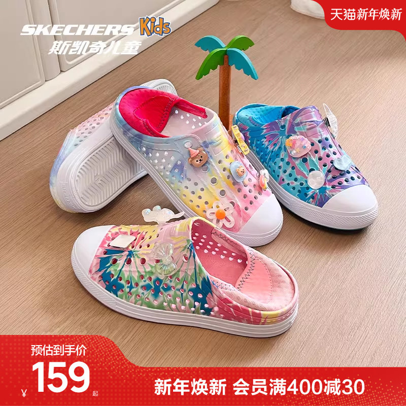Skechers斯凯奇儿童洞洞鞋女童夏季一脚蹬拖鞋儿童沙滩鞋凉鞋