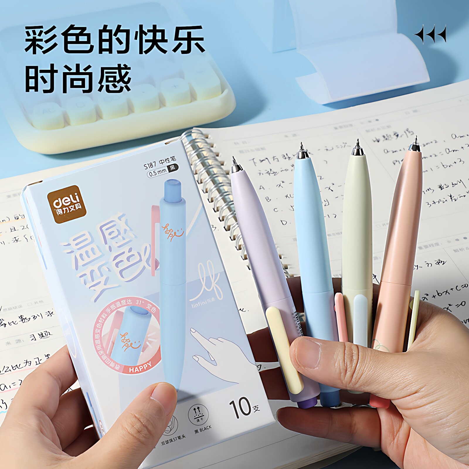 得力S187口袋笔乐素温变萝卜丁按动中性笔0.5mm双珠ST头黑速干笔