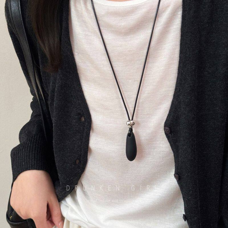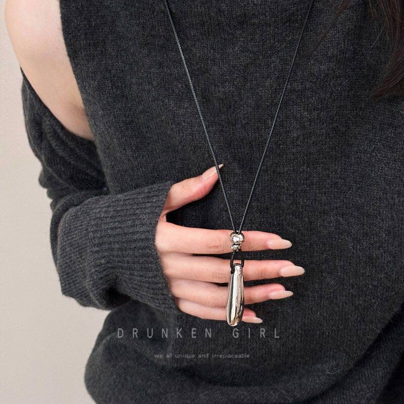 极简水滴吊坠项链女潮秋冬小众设计长款毛衣链2025新款高级感配饰