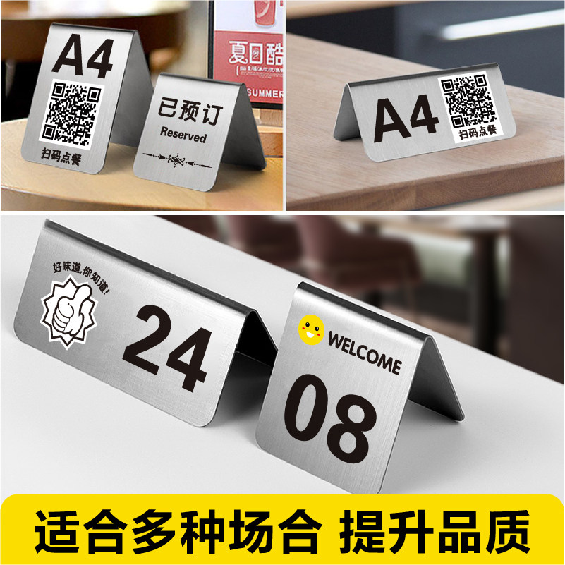 不锈钢留座牌桌号牌双面已预定中英文座位牌台卡桌牌留位牌已预留桌台牌餐厅已预订预定牌Reserved留桌牌订位