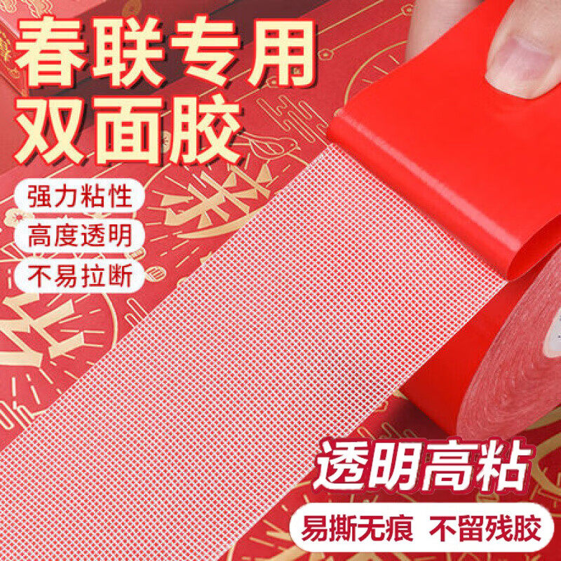 贴春联对联布基网格双面胶带高粘度不留残胶春节婚庆婚房红色装饰气球喜字福字年画胶布固定墙面地毯防滑胶贴