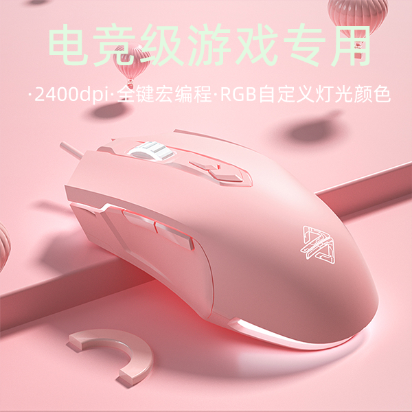 英菲克PW1有线鼠标静音游戏电竞机械宏办公usb台式笔记本电脑专用