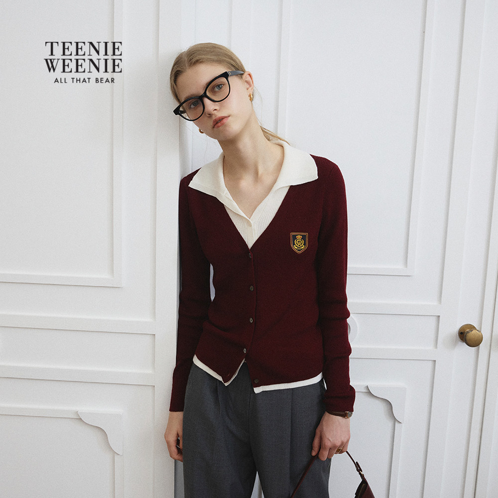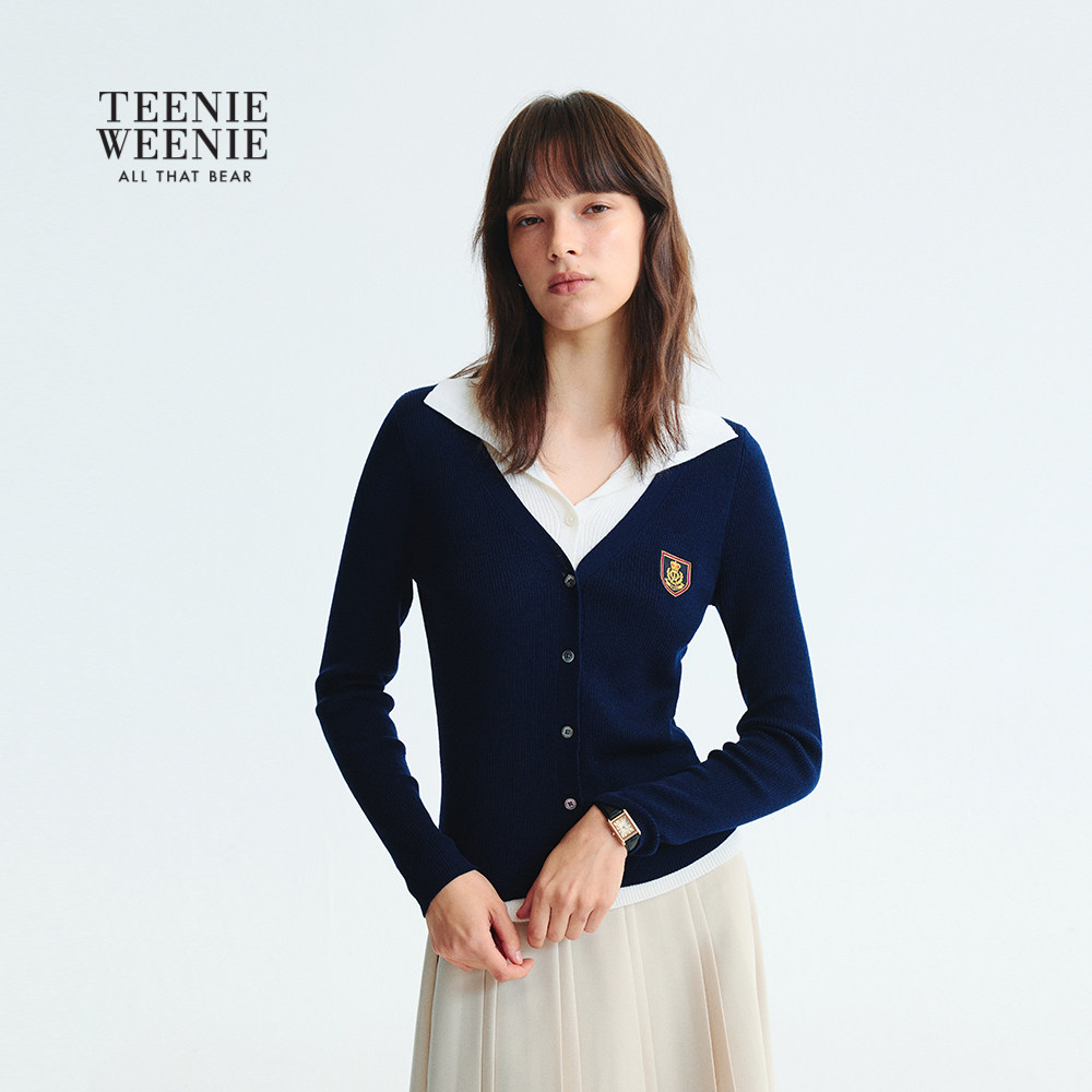 【可机洗+美利奴羊毛】TeenieWeenie小熊女装秋冬假两件翻领开衫