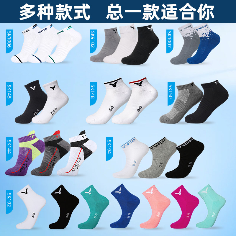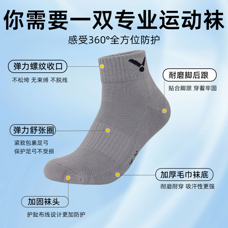 victor胜利羽毛球袜男加厚毛巾底吸汗透气运动短筒船袜合集威克多