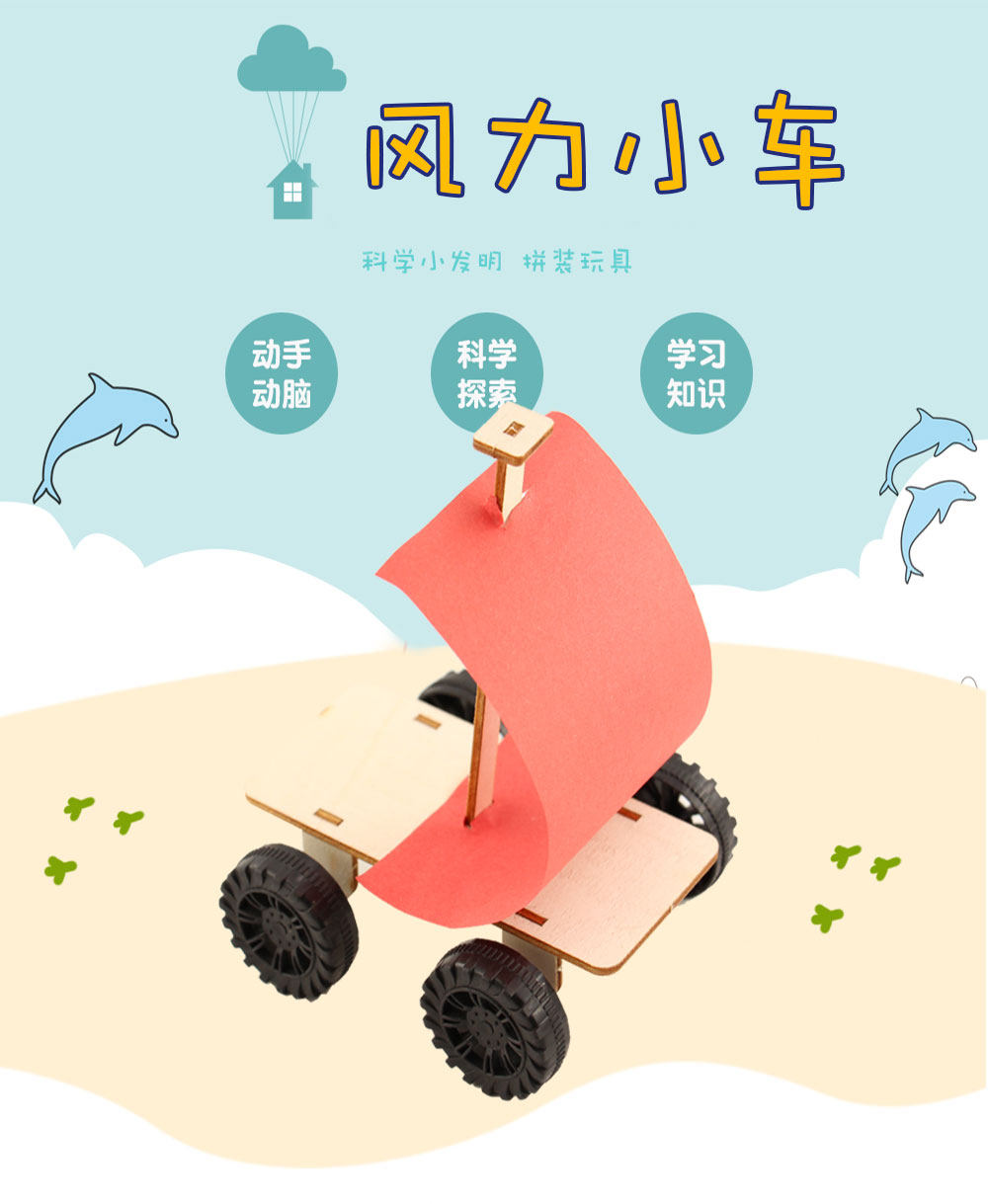 科技小制作风力小车 风帆车DIY手工制作拼装材料包益智儿童玩具