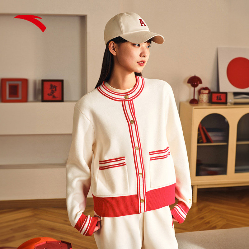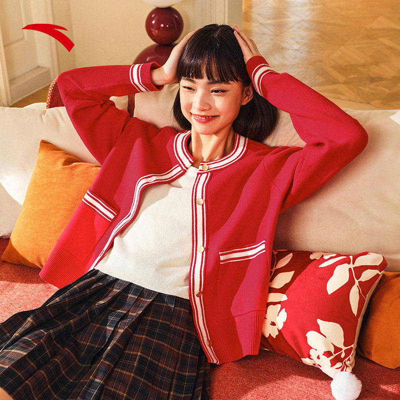 安踏好事发生丨新年红色针织开衫毛衣女款秋冬休闲外套马年本命年