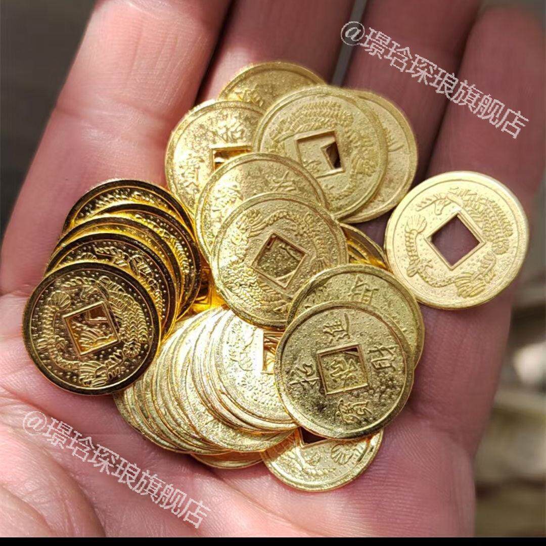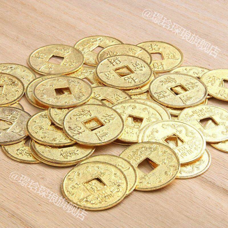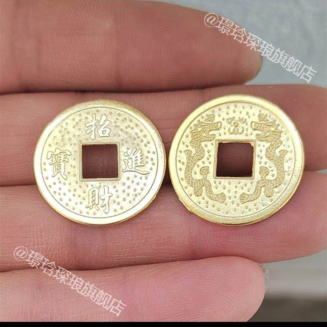 合金铜钱金色招宝龙凤铜钱装聚宝盆进宝发财树配件客厅装饰品