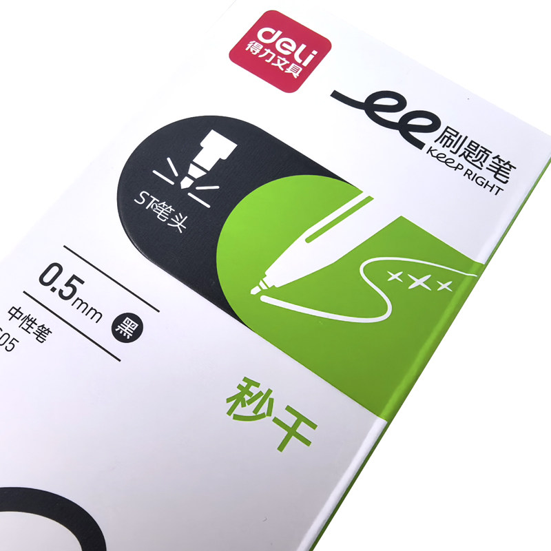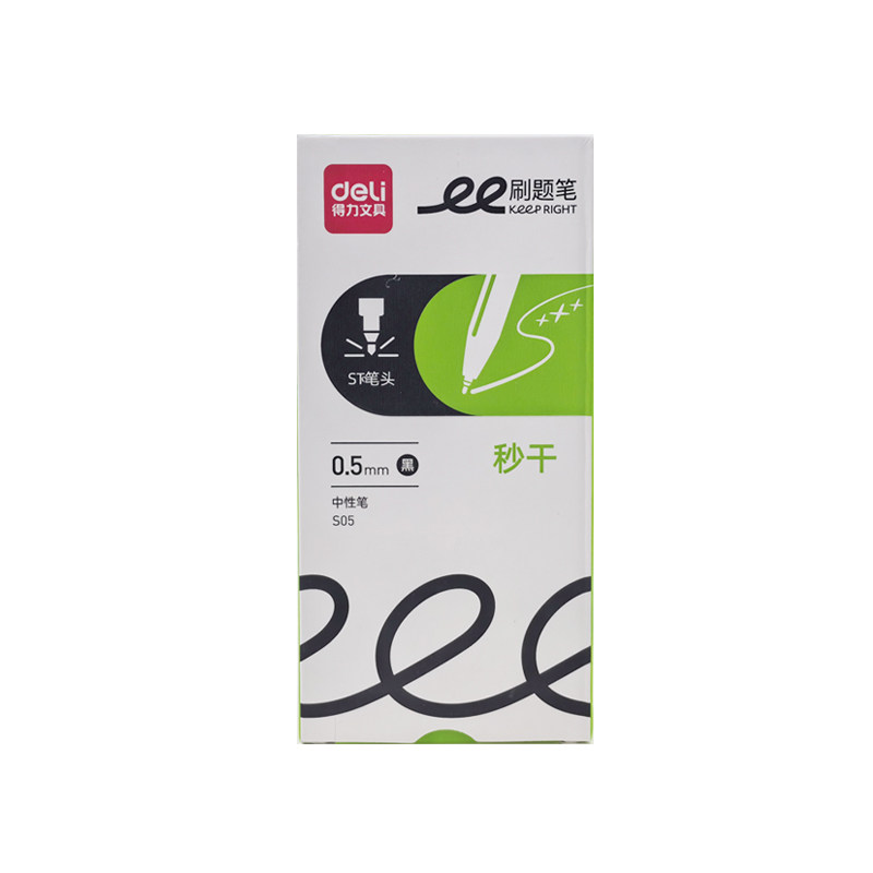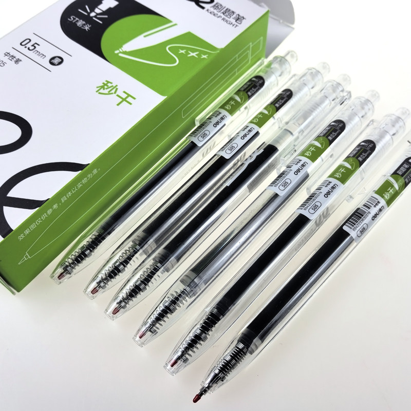 得力中性笔按动刷题笔st秒干速干水笔黑色0.5小学初中生考试办公