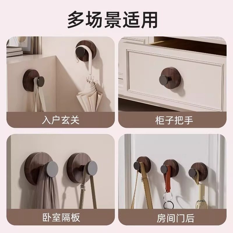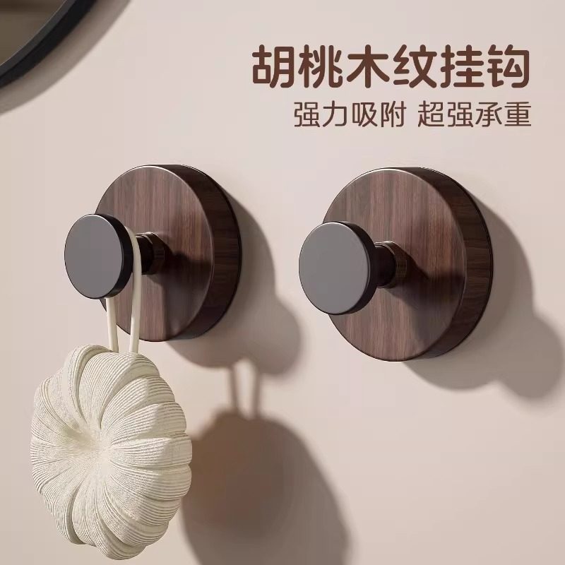 胡桃木真空吸盘挂钩强力承重免打孔入户门后厨房卫生间浴室挂衣钩