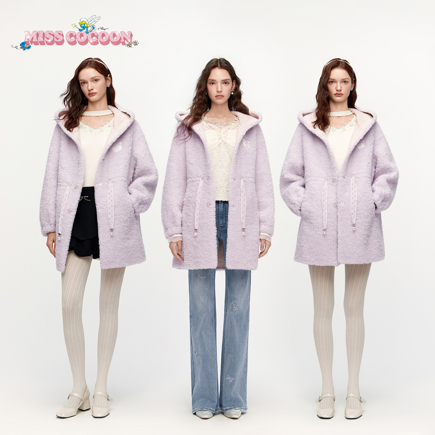 MISSCOCOON可可尼蓝精灵联名2025冬季新款紫色羊羔毛皮草外套女