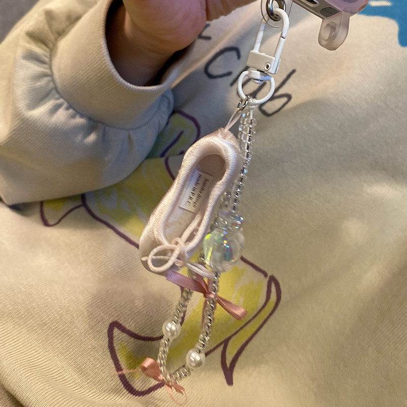 17mart韩国饰品ins时尚芭蕾舞鞋珍珠链手机挂链包挂钥匙链设计款
