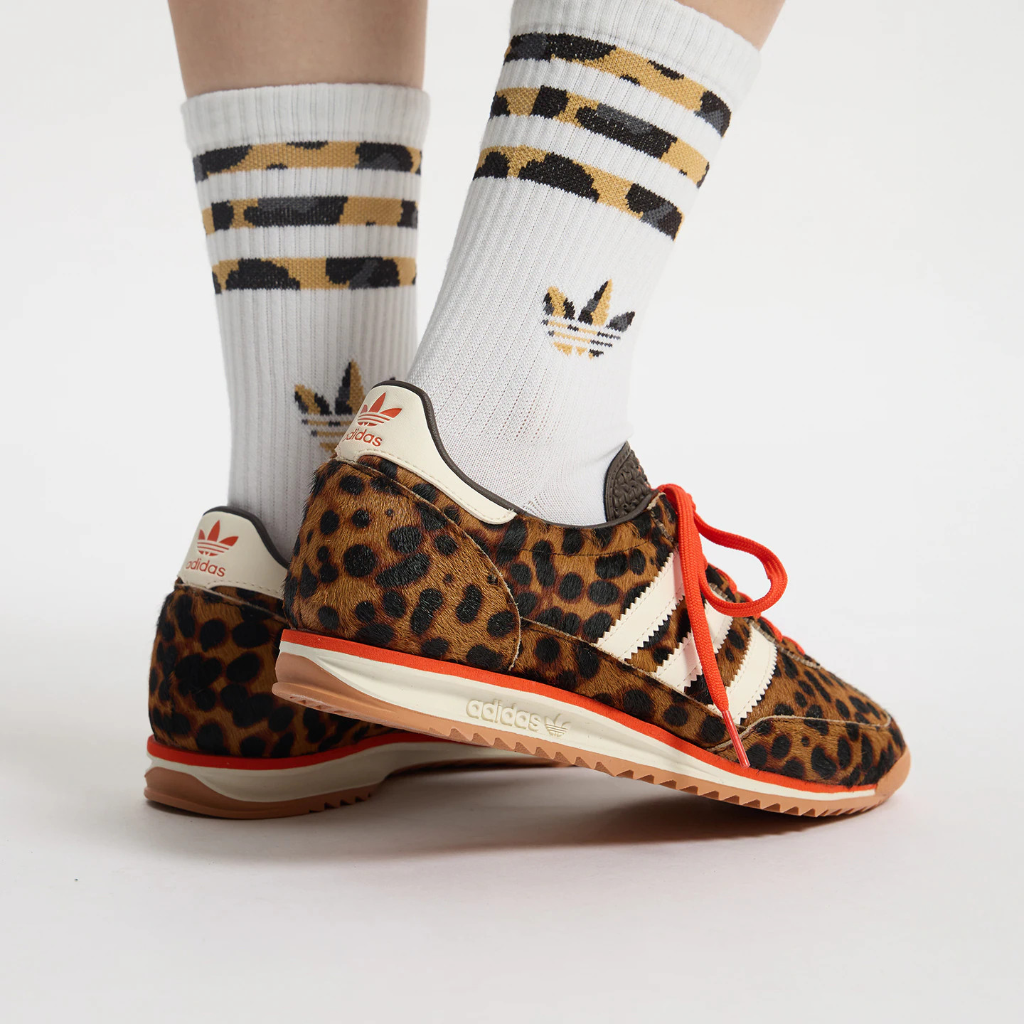 adidas阿迪达斯三叶草豹纹T头鞋秋冬女SL72 OG薄底运动鞋JI0189