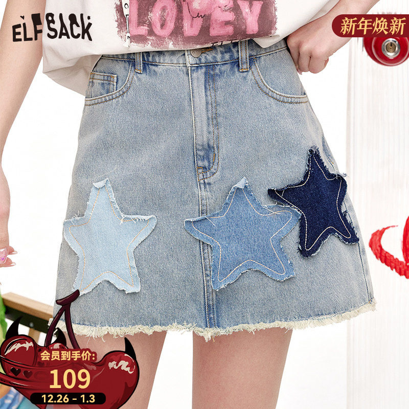 妖精的口袋五角星浅色牛仔半身裙女2025年夏季新款休闲百搭短裙子