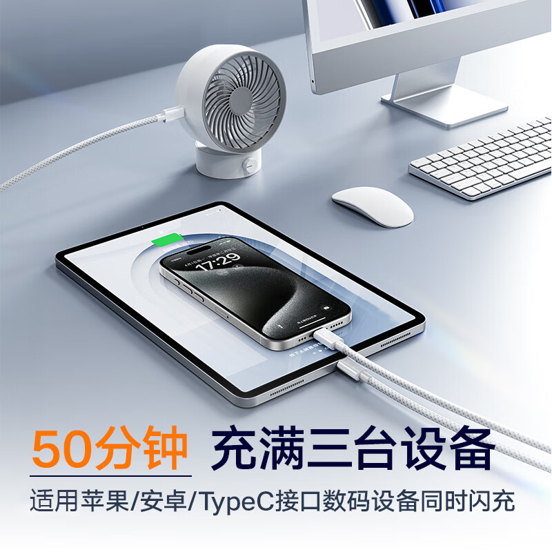 喜美诺快充数据线PD100W适用TypeC苹果15充电线iPhone16苹果13Pro苹果14华为小米PD30W快充