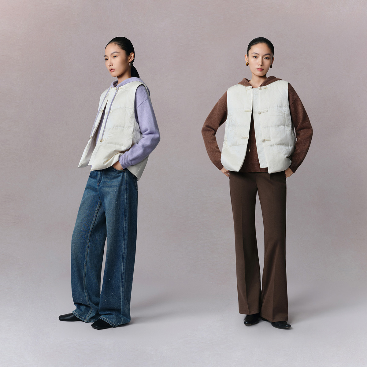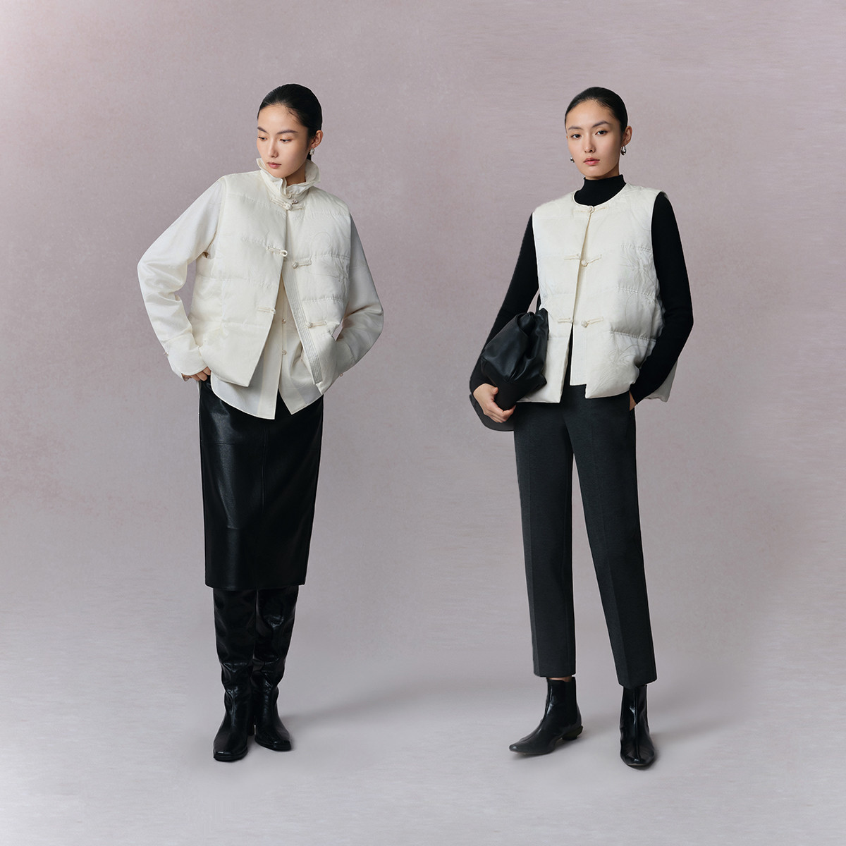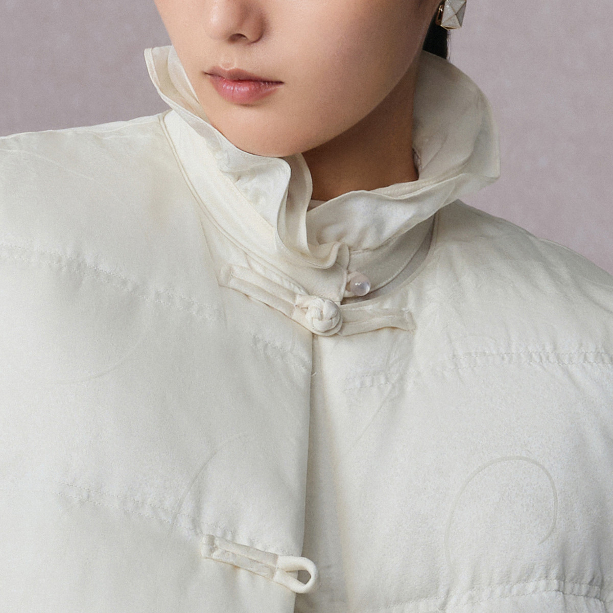 【云朵白月光羽绒马甲】纳薇25冬新款羊毛静奢提花鹅绒新中式