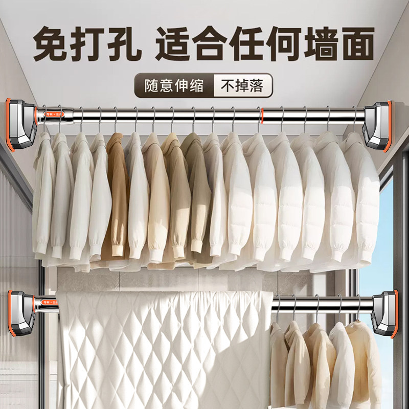 阳台简易晾衣杆浴室免打孔晾衣架卫生间可伸缩浴帘杆窗帘杆撑杆子