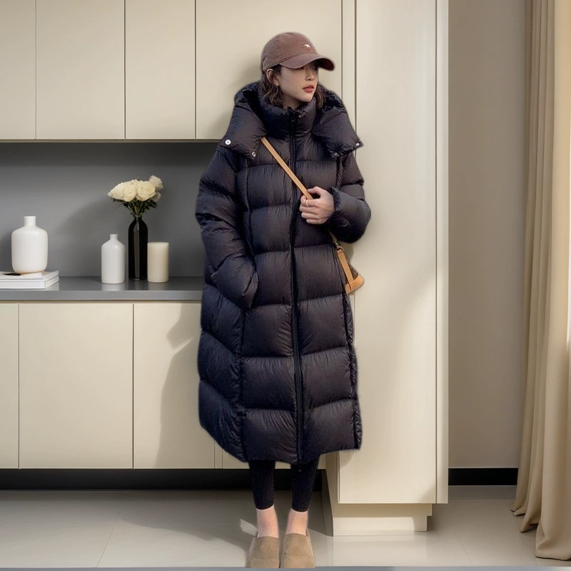长款黑色高级感鹅绒羽绒服女2025冬季加厚云朵泡芙巨好看外套小个