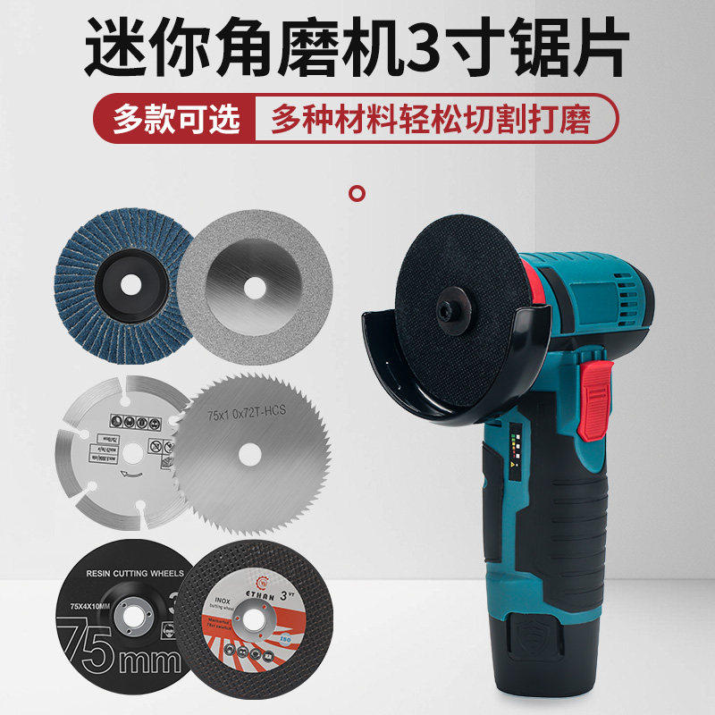 迷你锂电角磨机75m切割片3寸木工玻璃石材瓷砖金属打磨抛光百叶轮