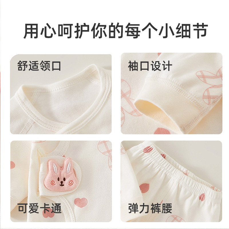 婧麒新生婴儿儿衣服春秋初生宝宝保暖衣纯棉分体套装满月衣服套装