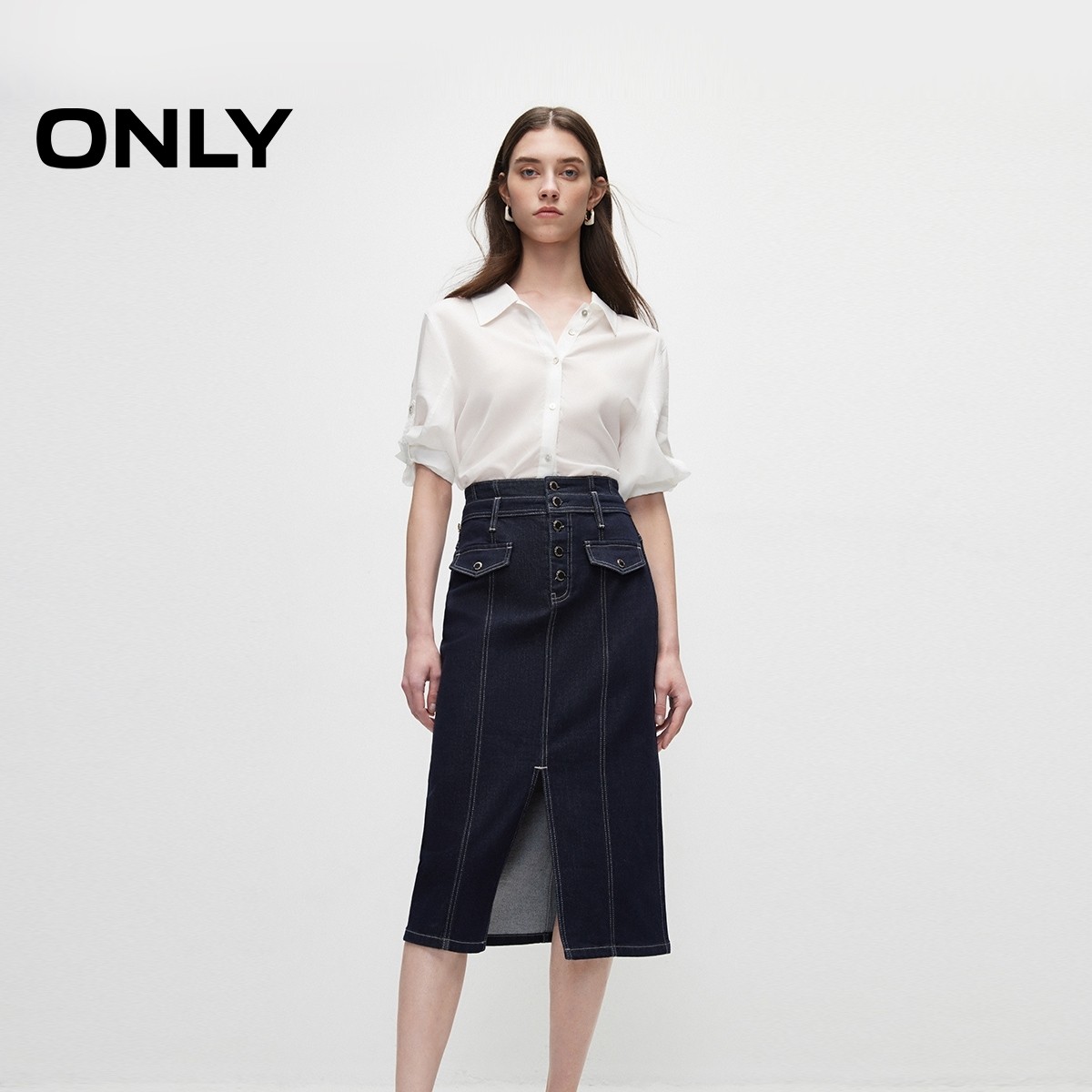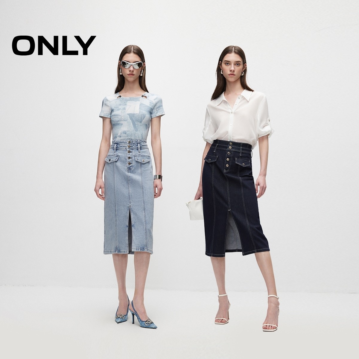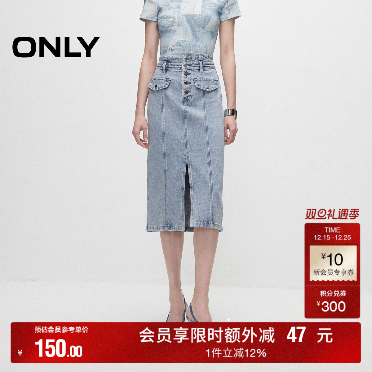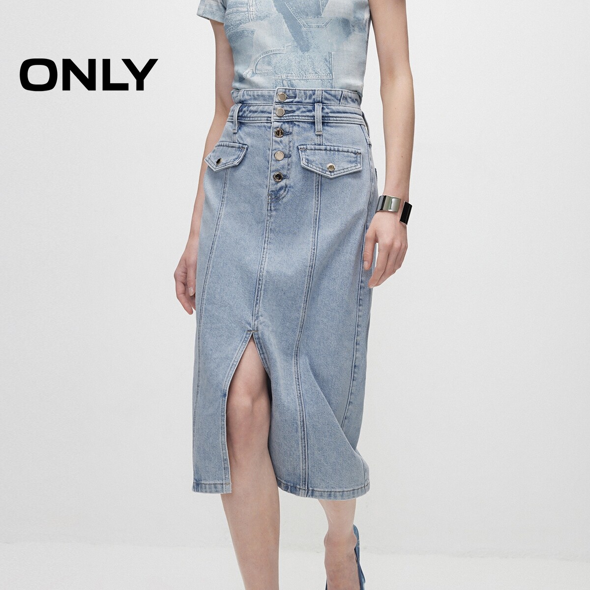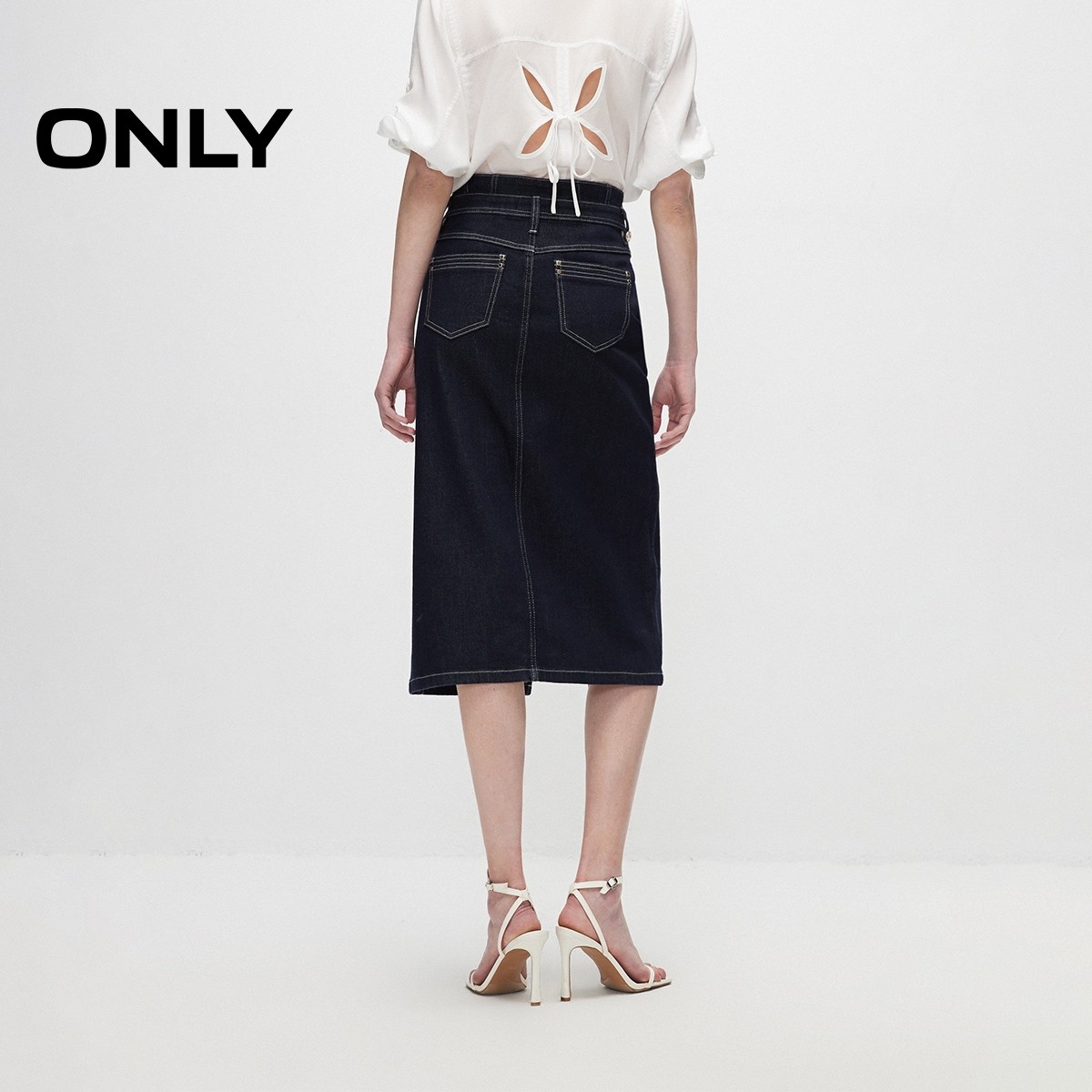 【ONLY奥莱】秋冬时尚高腰H型开叉中长裙牛仔半身裙女