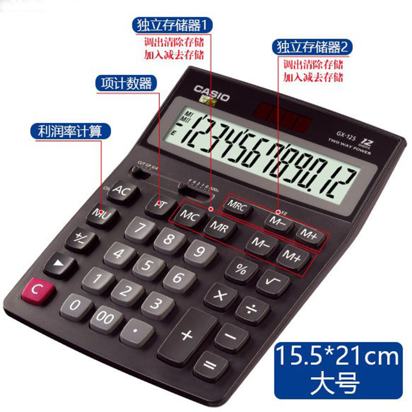 大号卡西欧台式双电源计算机15.5*21cm太阳能GX-12S等同GZ-12S