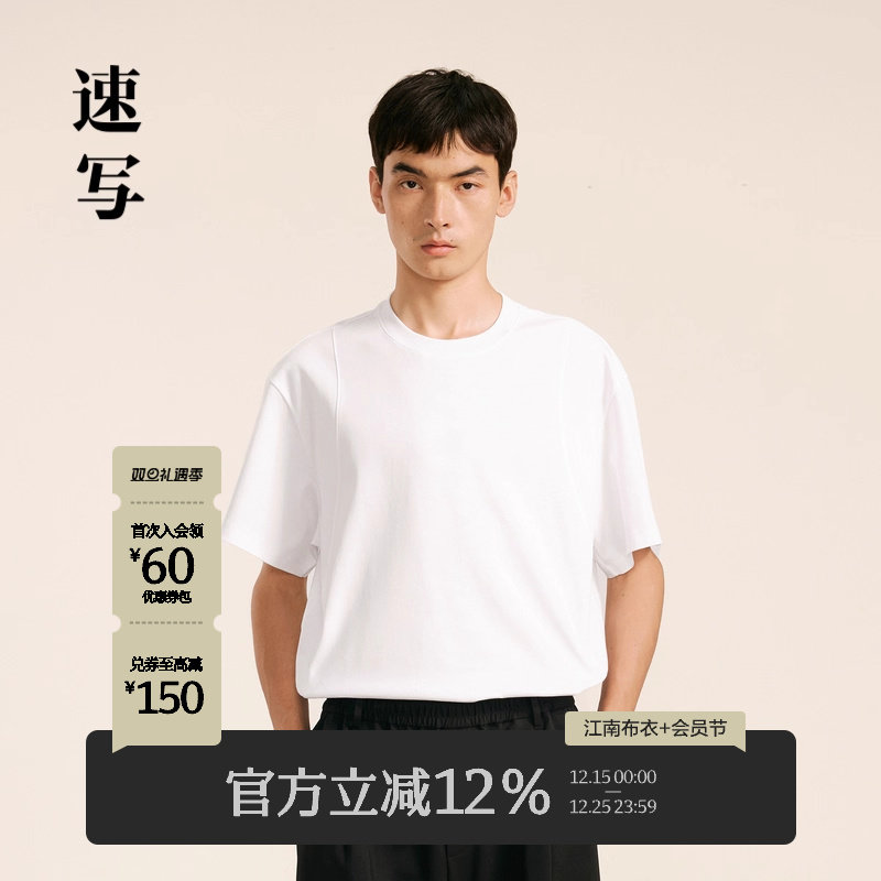 速写男装秋冬新款休闲短袖重磅T恤棉质圆领套头宽松时尚潮流上衣