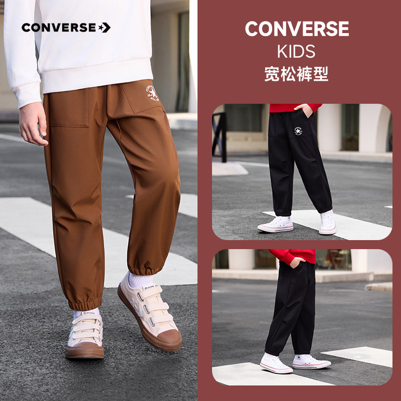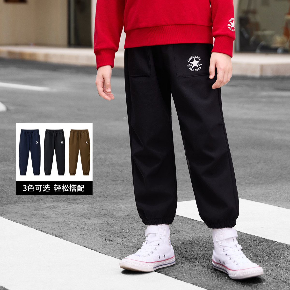 匡威童装男童长裤青少年春季新款保暖梭织加绒运动裤纯色休闲卫裤