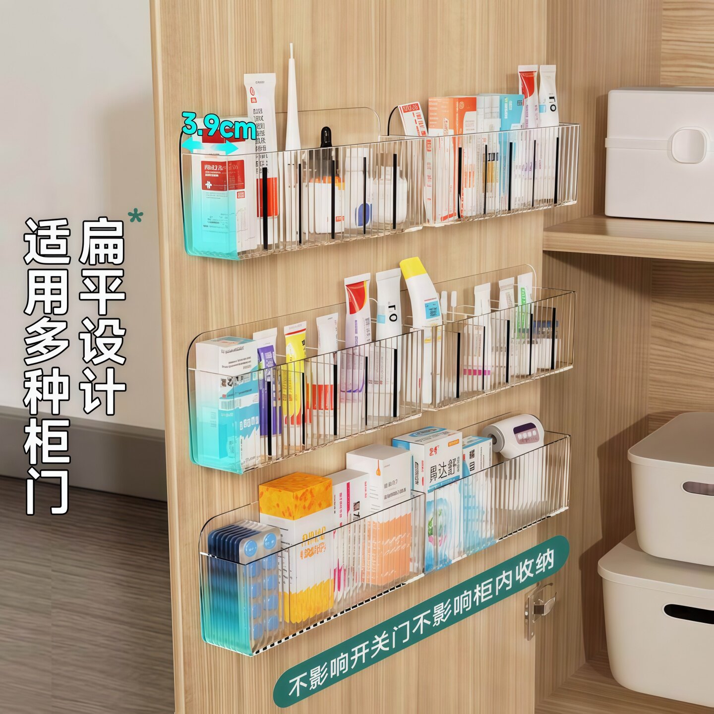柜门药品收纳盒壁挂式家用大容量医药物收纳架药膏药盒分类整理架