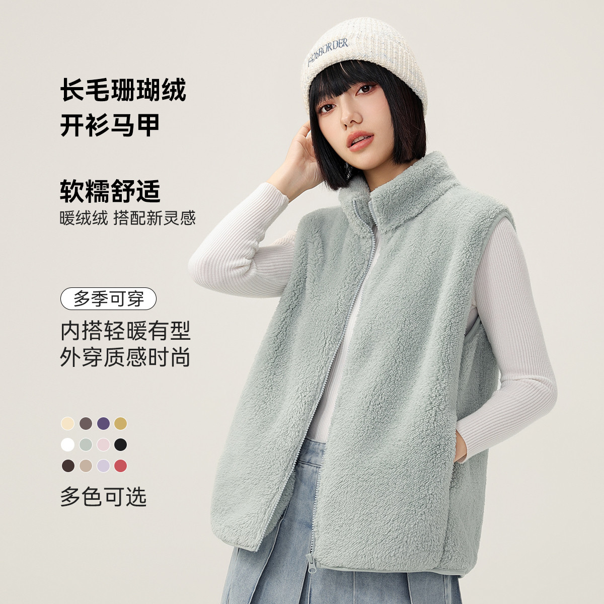 【所有女生直播间】雪中飞女士短款摇粒绒马甲/小香风外套