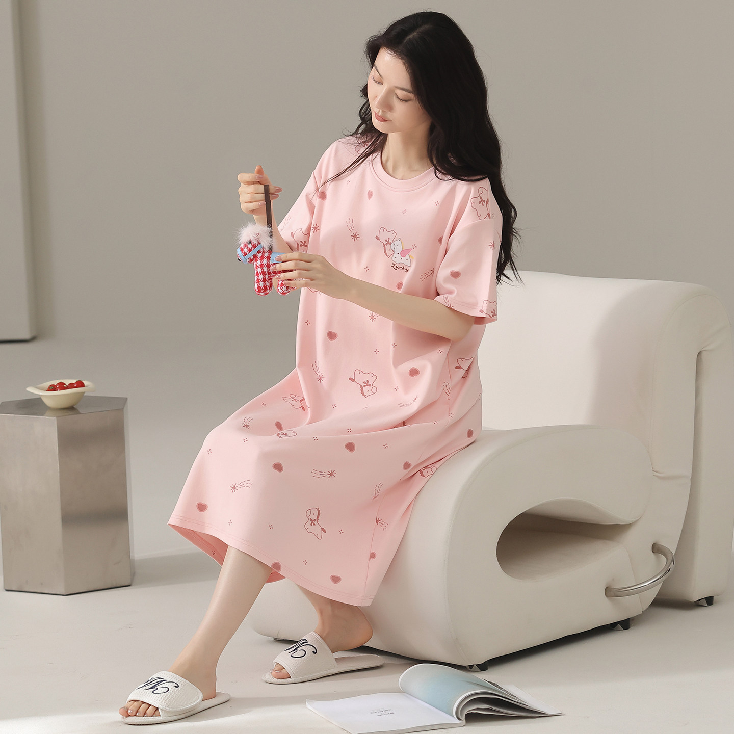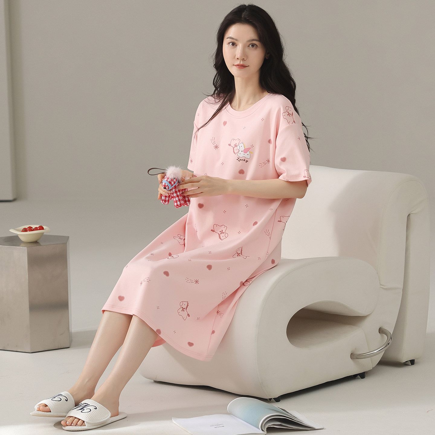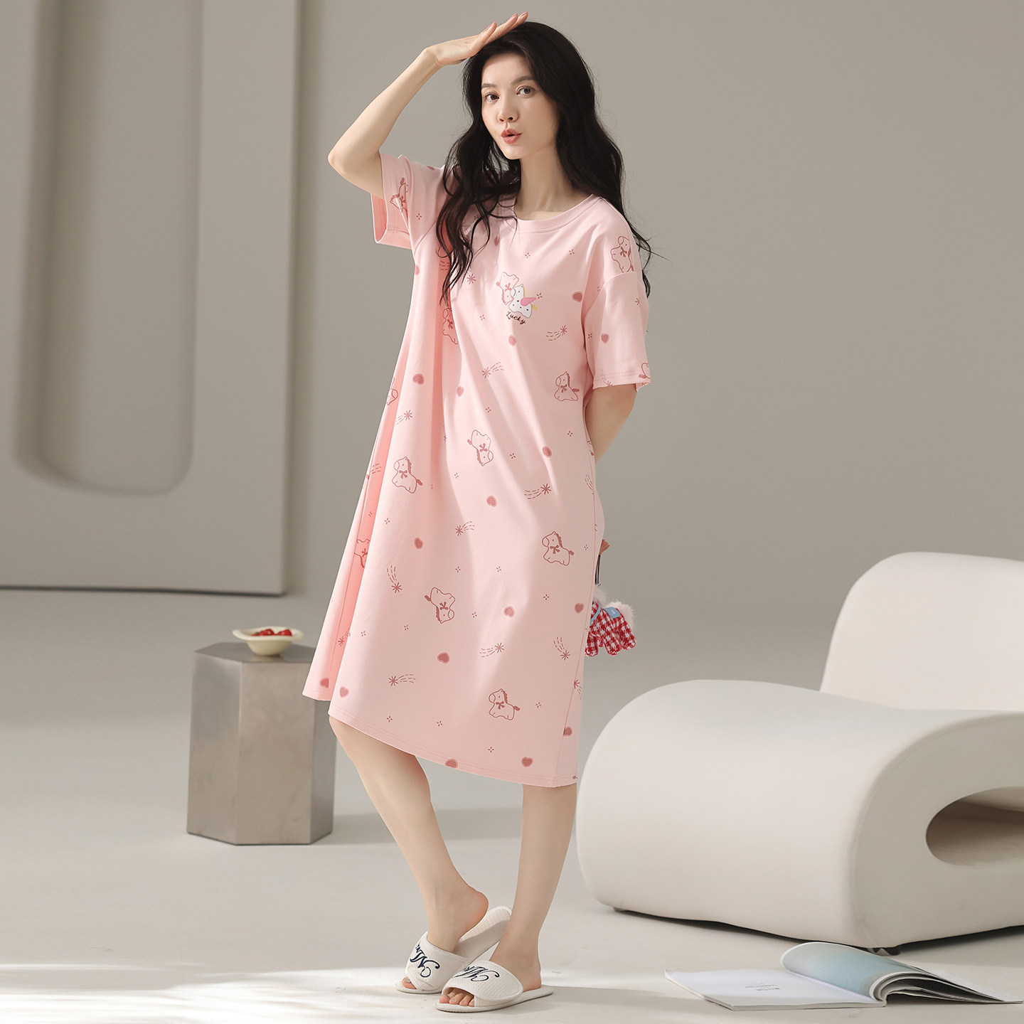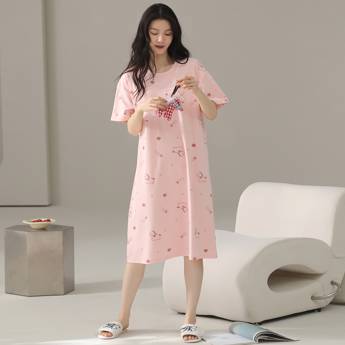 夏季薄款睡裙女款短袖纯棉家居服睡衣女士小个子可外穿100全棉