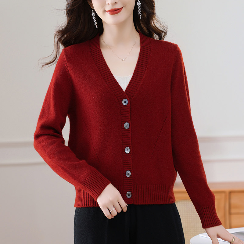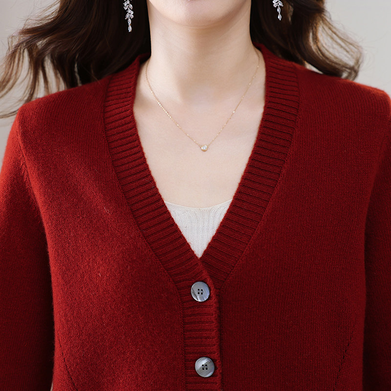 反季清仓春秋新款V领羊绒开衫女外搭纯色大码毛衣打底针织衫外搭