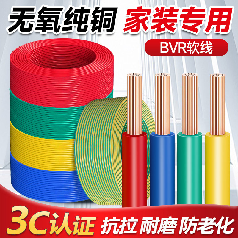 国标电线bvr家用纯铜芯多股软线1.5/2.5/4/6平方家装铜线铜芯线