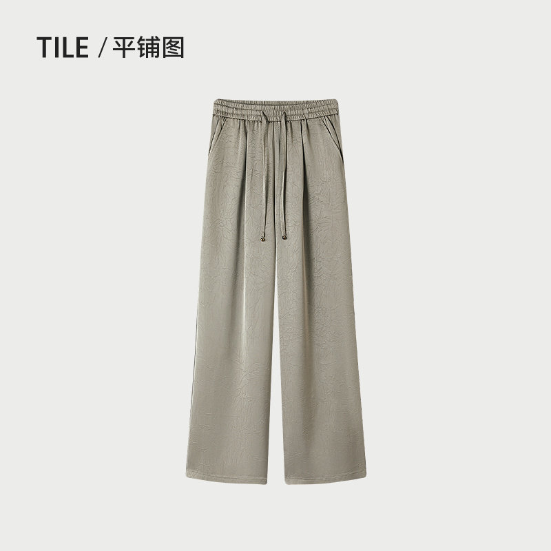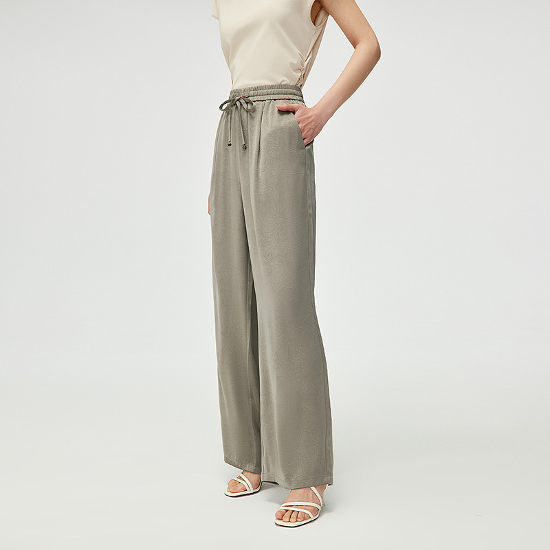 HLA/海澜之家中式休闲裤26春夏雪纺花纹优雅松弛氛围感裤女装