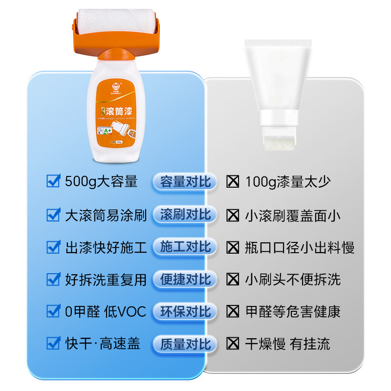 大滚刷补墙漆白墙面修补滚筒漆修复乳胶漆腻子粉家用自刷涂料白色