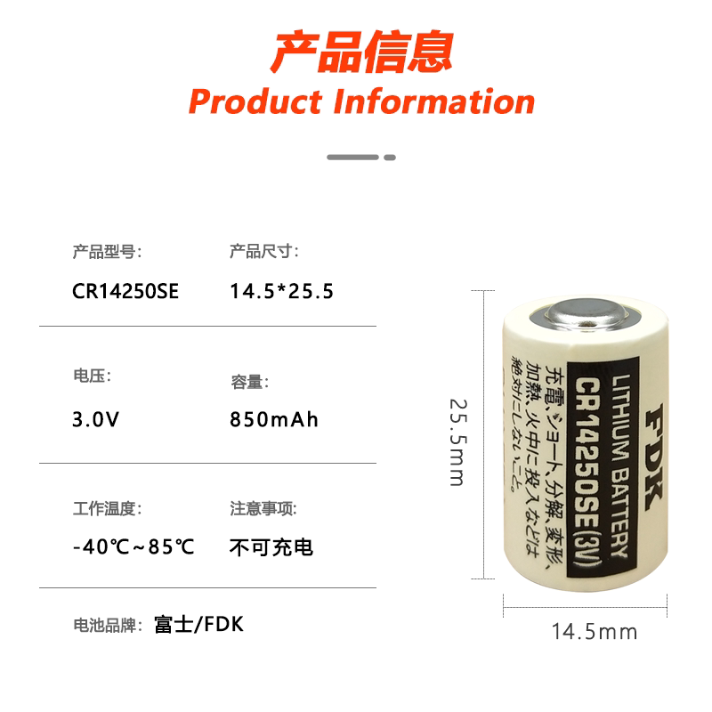 FDK富士通CR14250SE(3V) 1/2AA锂电池适用于AB编程控制器1747-BA永宏光洋欧姆龙PLC伺服OTC机器人主板时钟RTC