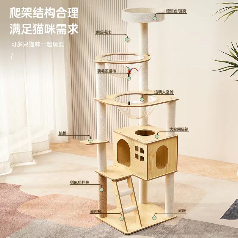 猫爬架猫树一体大型猫窝架子小户型不占地猫咪玩具双太空舱猫别墅