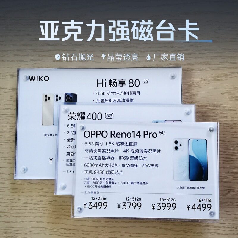 手机标价签台牌桌牌水晶标签架价格牌展示牌强磁性加厚亚克力台卡