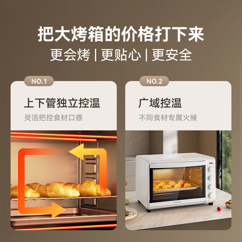 长帝电烤箱家用新款42升大容量多功能全自动披萨蛋糕烘焙小型烤箱