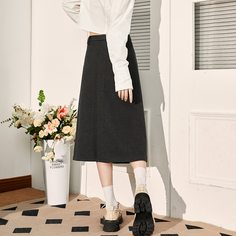COCOBELLA设计感高腰通勤OL遮胯半身裙西装裙过膝毛呢长裙HS613-2
