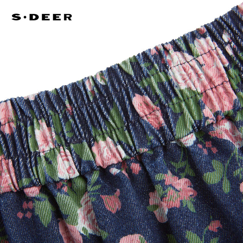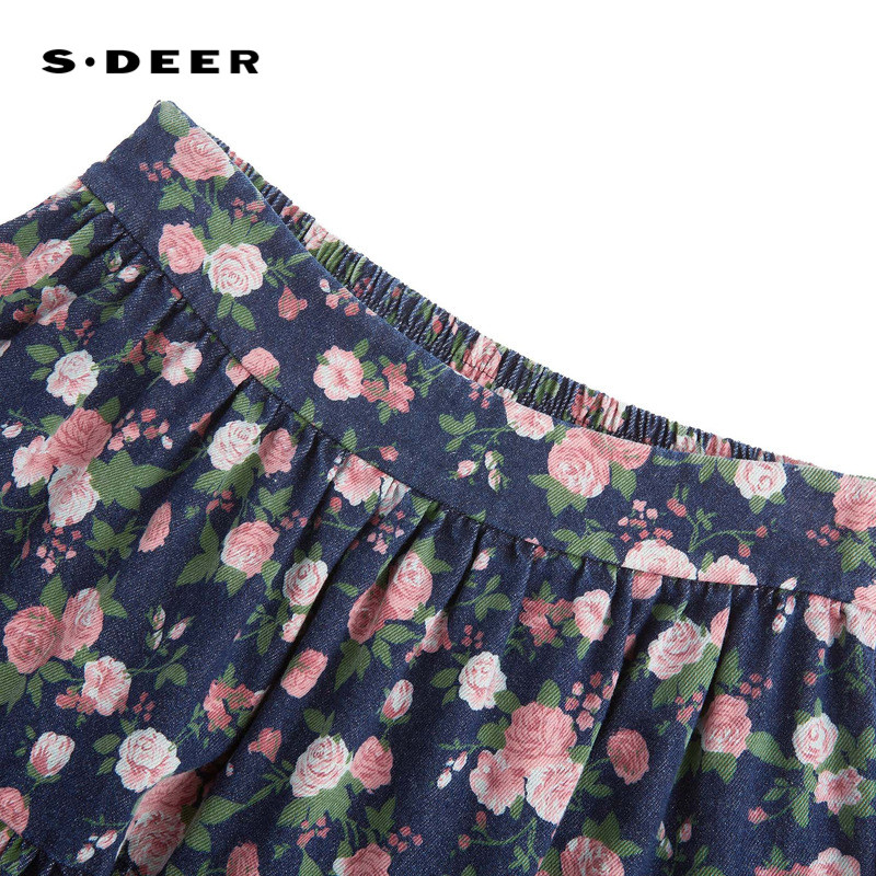 sdeer圣迪奥女装复古高腰松紧拼接碎花A字伞裙S243Z1120