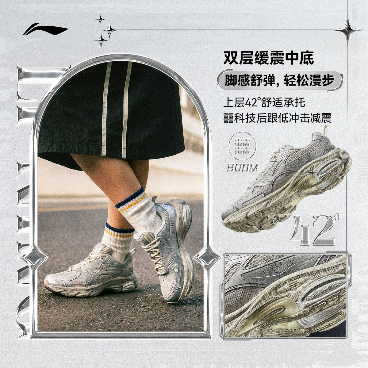 李宁扶摇boom丨䨻缓震跑步鞋新款情侣山系潮流百搭老爹鞋运动鞋女