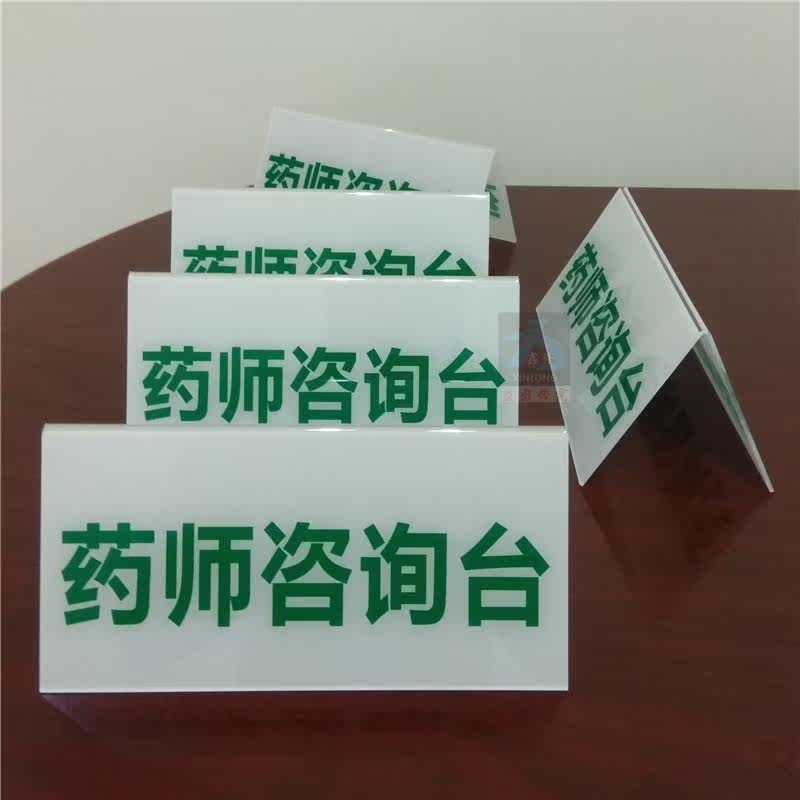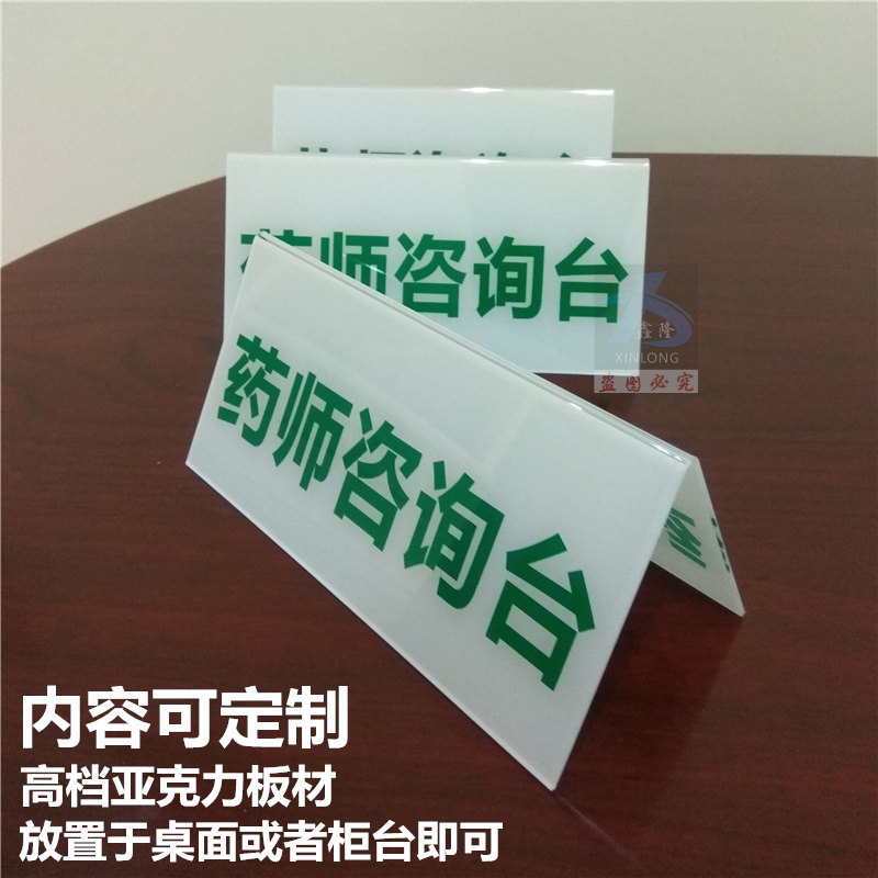 药师咨询台牌药店导询桌牌诊所柜台三角牌医院问询台卡内容可定制